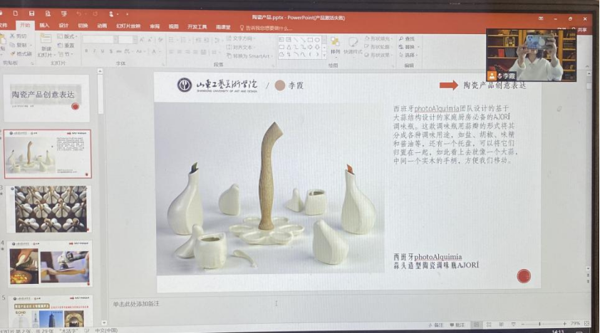教师李霞为2022级雕刻2班授课《陶瓷产品创意表达》,利用腾讯会议等形式在线授课。