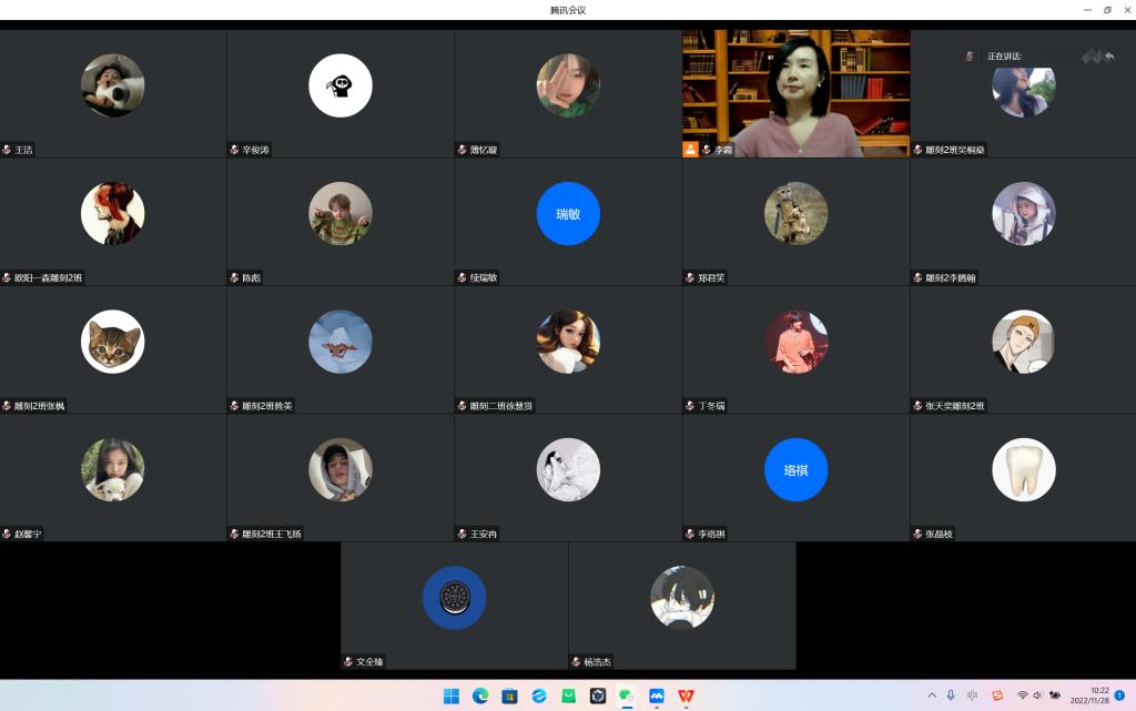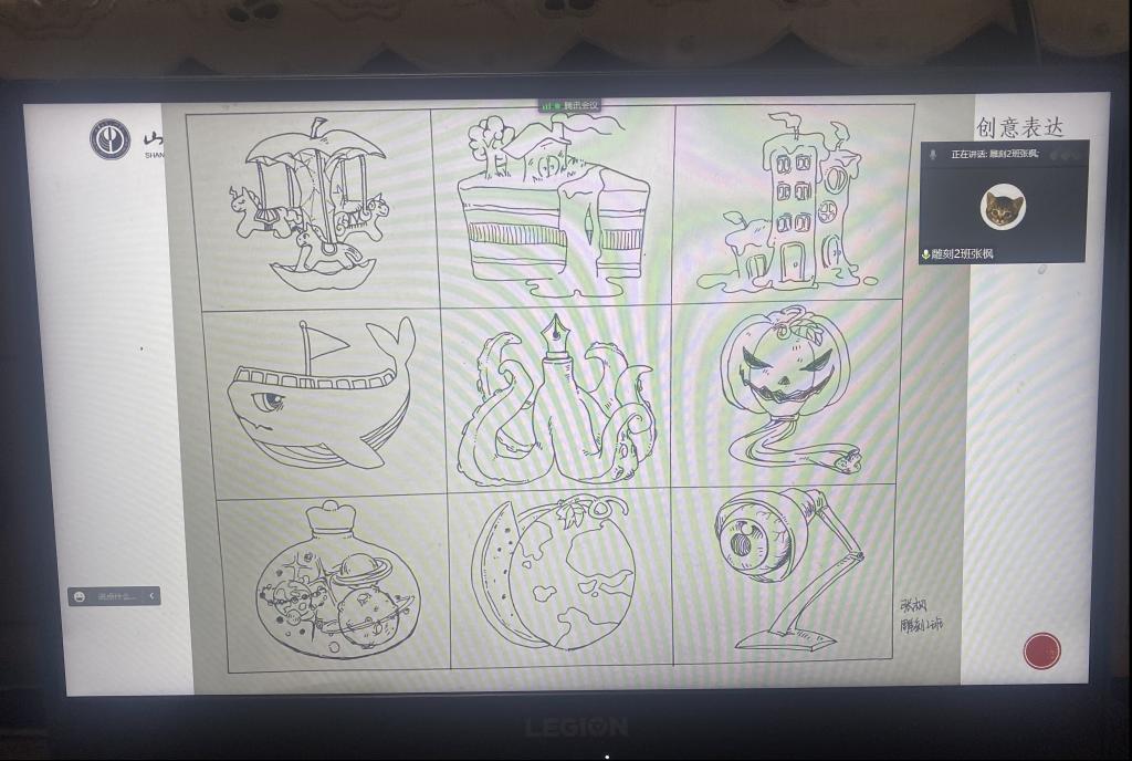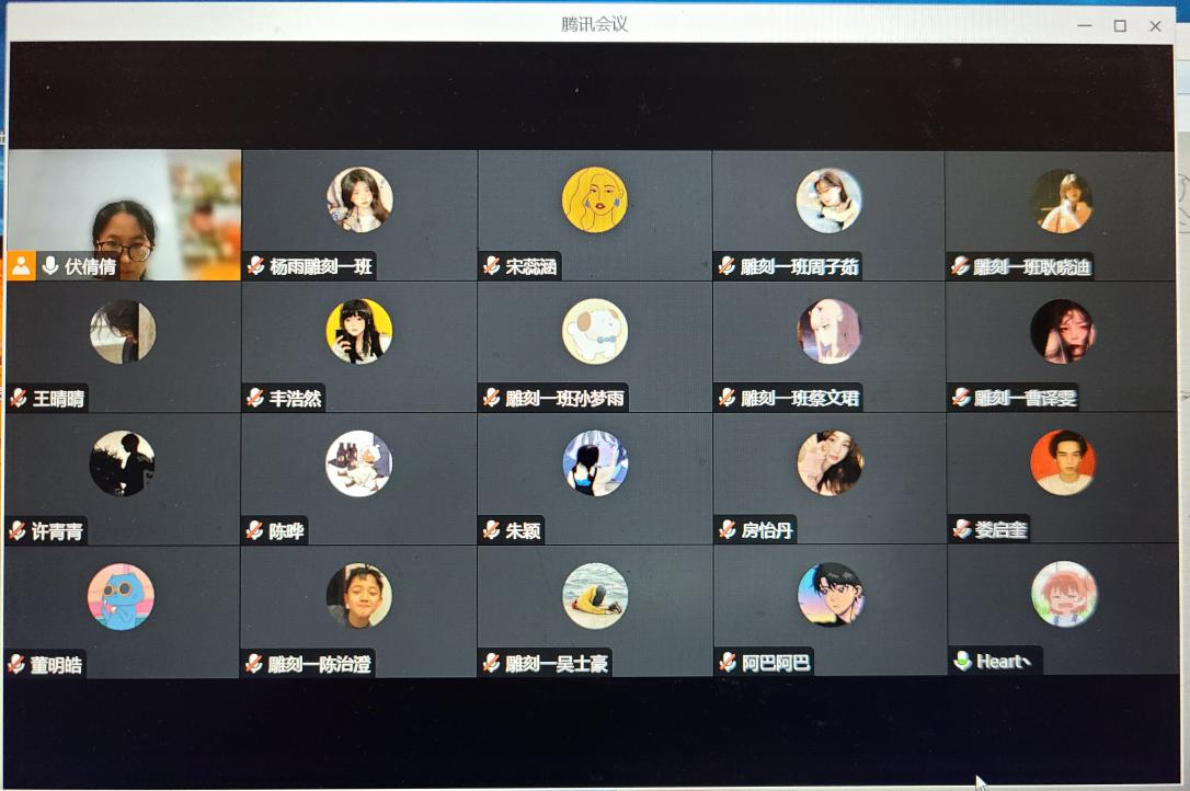 教师李霞为22级雕刻2班授课,课程名称为《陶瓷产品创意表达》,利用腾讯会议等直播平台授课。