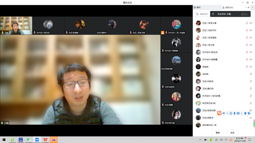 教师王楠为22级艺术设计2班授课,课程名称为《构成设计》,利用腾讯视频直播平台,《设计构成方法——不枯竭的创意从何而来》,宋玉玉,山东大学,中国大学MOOC在线开放课程教学资源进行授课。