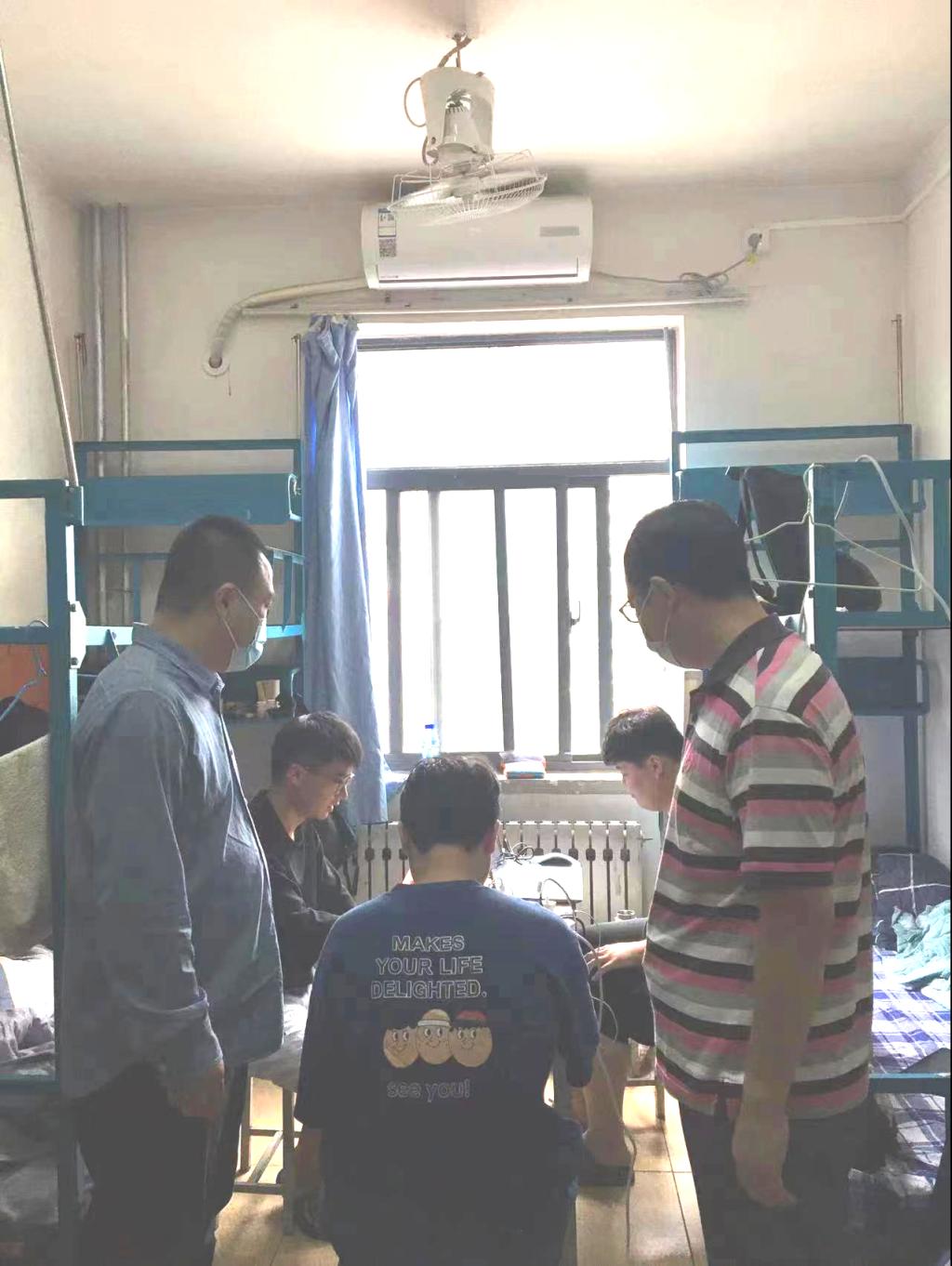 为深入了解疫情防控期间学生学习状况,保证教学秩序平稳有序,督促学生自觉学习、规律生活,及时了解、掌握并解决线上教学期间同学们遇到问题,9月16日,基础教学部主任谢其云、党委直属党支部书记李忠诚、教学秘书顾美振、辅导员杨景然一行四人深入学生宿舍,对学生线上课程学习情况进行了督查。