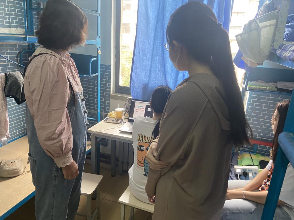 走访督查过程中,基础教学部一行四人与学生亲切交谈,及时了解学生上网课的状态、网络流畅性、教师上课质量、网课学习成效等情况,对发现的问题及时反馈、及时处理。谢其云要求同学们即使在宿舍上课,也要认真投入,树立自觉学习、自我监督的意识,做好学习笔记。此外,基础教学部教学督导组还就同学们在学习、生活中遇到的困难进行了摸排,提醒同学们要保持宿舍卫生、及时通风,全力做好疫情防控工作。