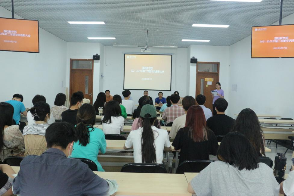 为培育良好学风,帮助学生提高自信,鼓励和引导学生努力做到有理想、有追求、有担当、有作为,推动学部工作更好的发展,6月17日下午,基础教学部召开2021-2022学年第二学期学风表彰大会,基础教学部全体教师参会。