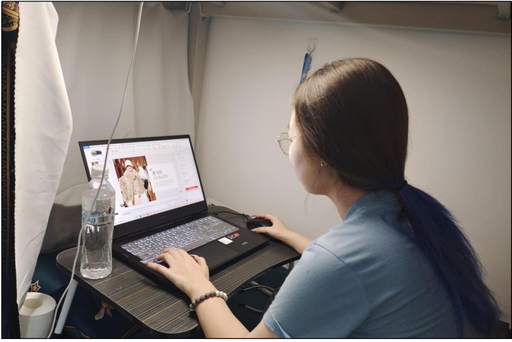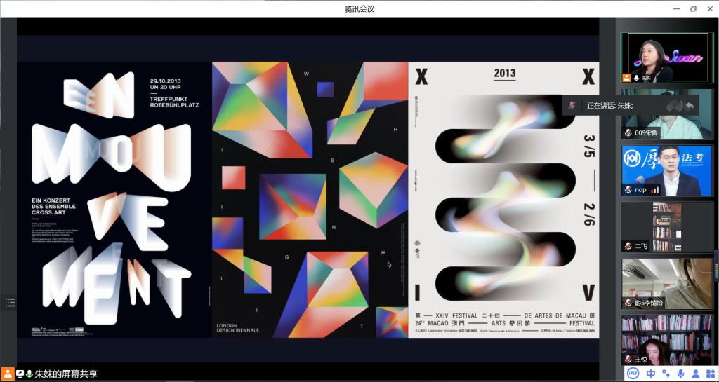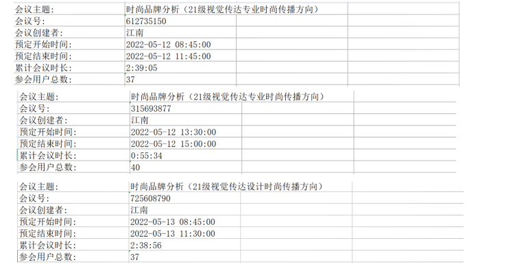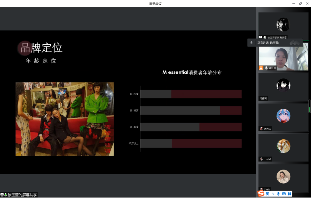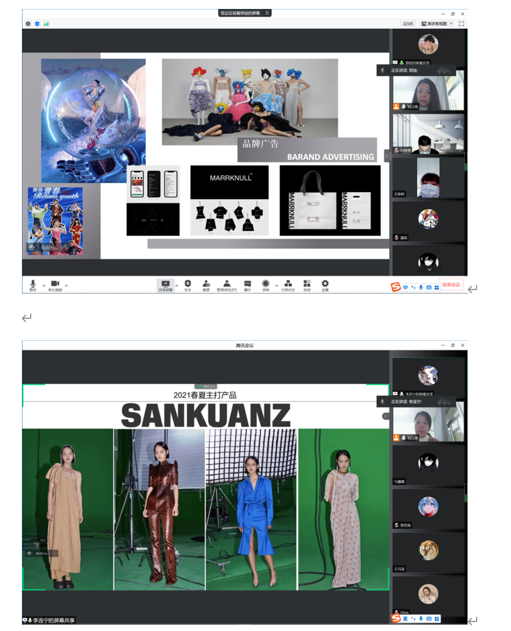 教师刘江南为视觉传达设计班讲授《时尚品牌分析》课程,采用腾讯会议、企业微信等直播形式。
