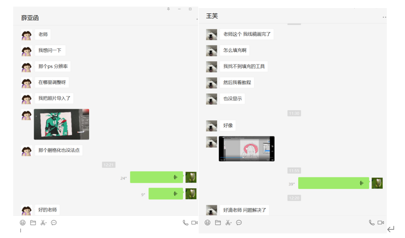 2,每天定时直播授课,通过分享屏幕,将教学中的重难点和学生学习过程中遇到的问题进行慢动作操作示范讲解,集中解决一些共性问题;学生在练习及做作业过程中遇到的个别问题通过企业微信群或单独辅导的形式及时讲解并解决。