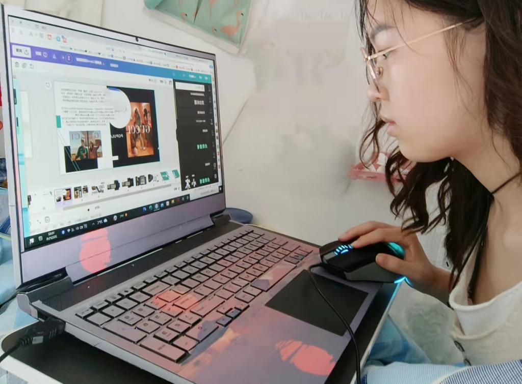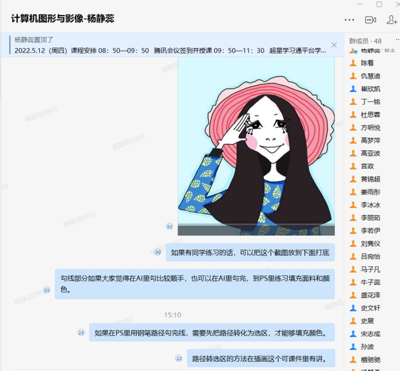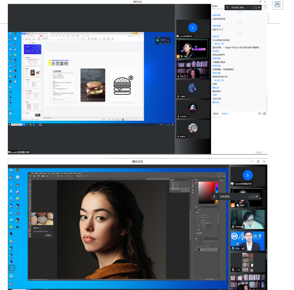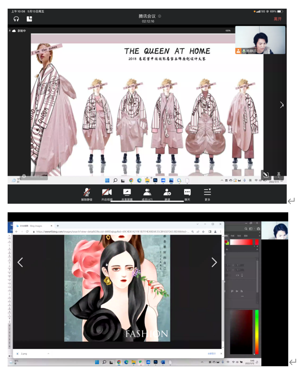 教师杨静蕊为服装与服饰设计班讲授《计算机图形与影像》课程,采用腾讯会议直播平台。