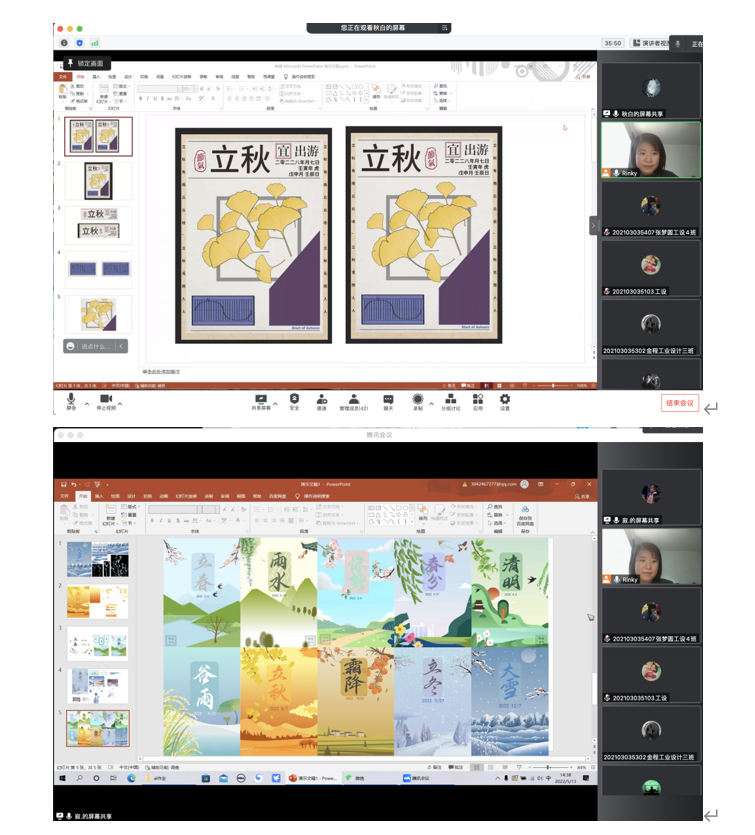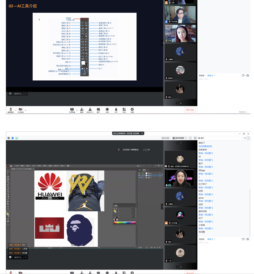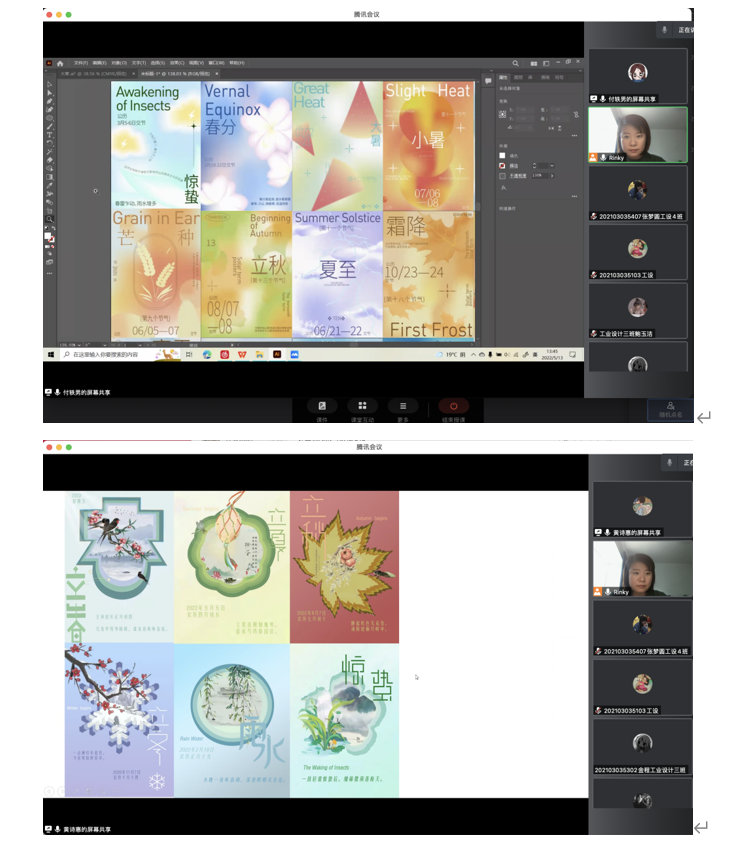 在网络流畅环境下部分学生打开摄像头,通过学生反映及时得到教学反馈。在软件实践过程中同学们随时与老师进行线上沟通,进行作品指导。同时推荐近期相关平面设计赛事,鼓励学生参赛,以赛促学。