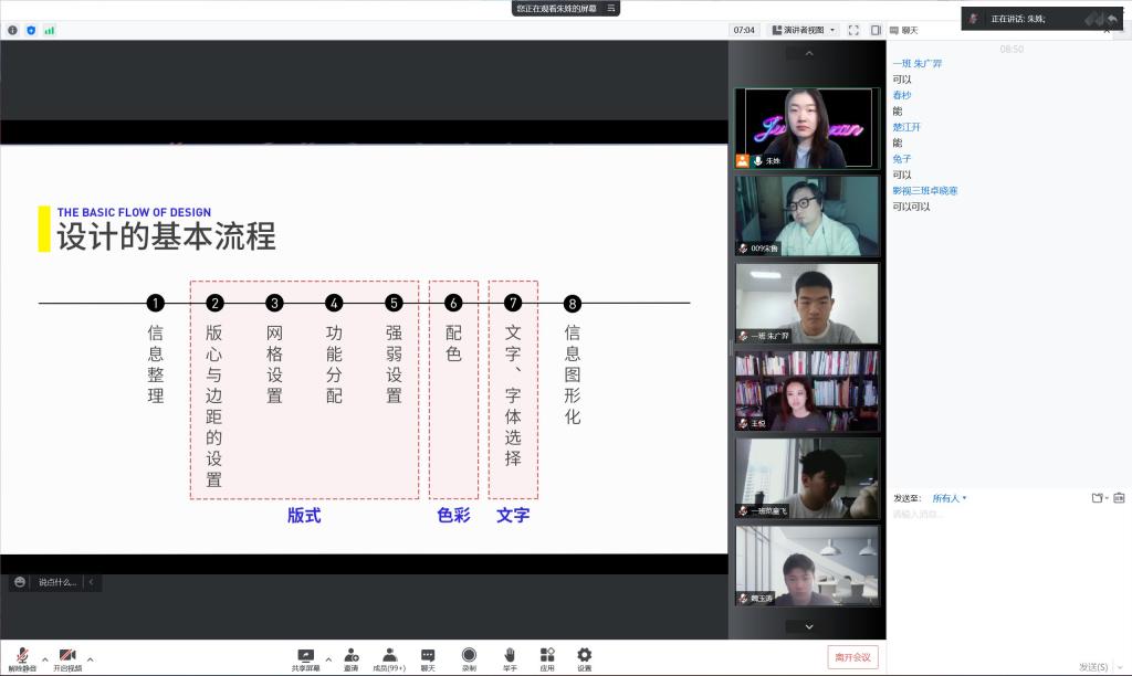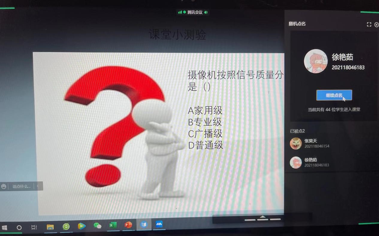 教师孔祥天娇为工业设计班讲授《计算机图形与影像》课程,采用雨课堂、腾讯会议直播平台。