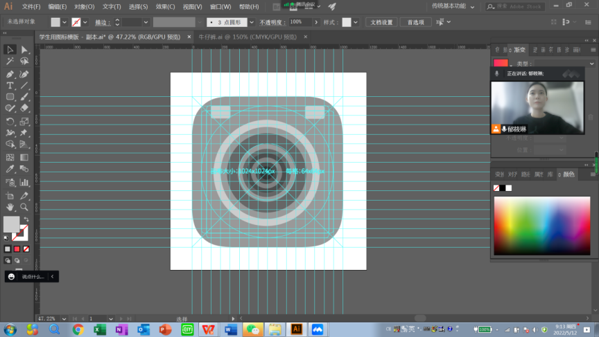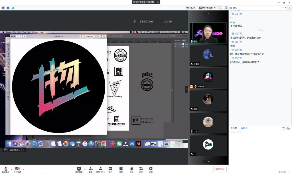 教师郁筱琳为服装与服饰设计班讲授《计算机图形与影像》课程,采用腾讯会议直播形式。