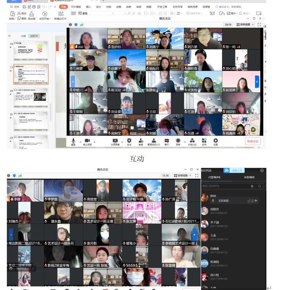 教师宋鲁、王悦、朱姝为影视摄影与制作班讲授《计算机图形与影像》课程,采用腾讯会议、企业微信直播平台。