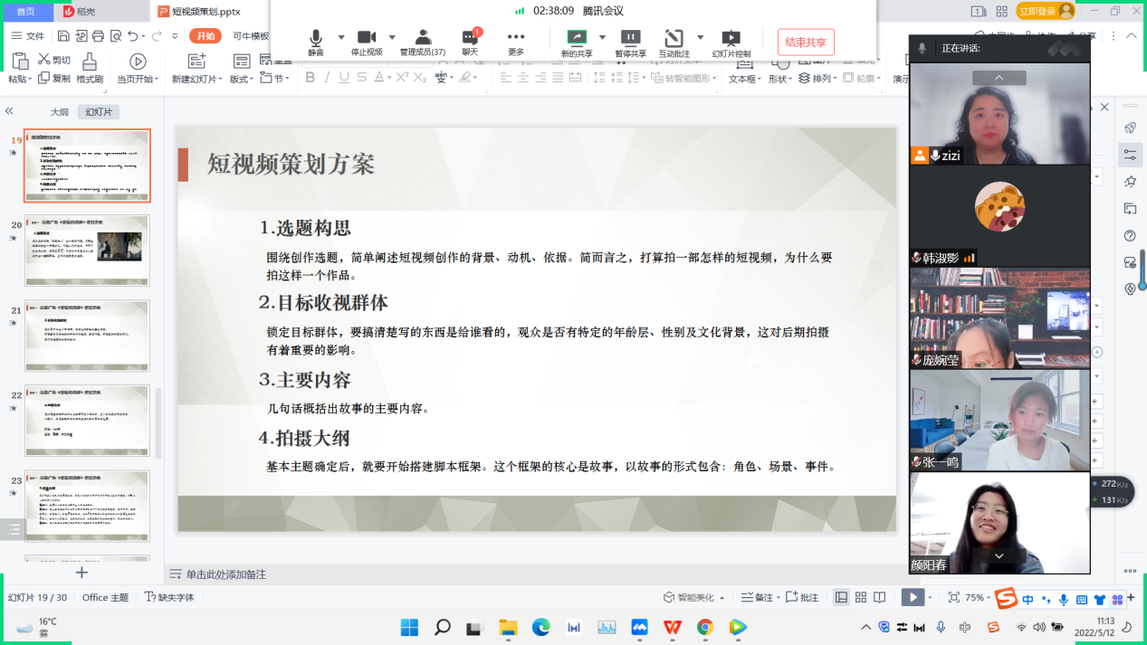学生通过腾讯会议平台在线汇报调研结果。教师通过平台点评作业内容,并给于修改意见。