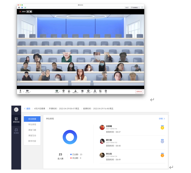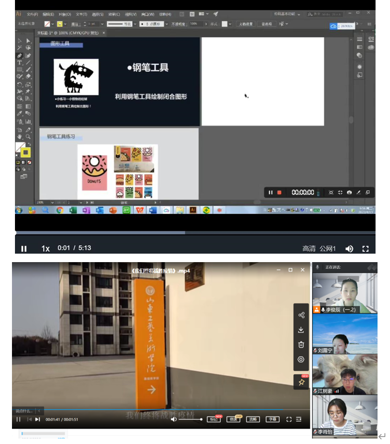 现展示基础教学部线上教学过程截图如下: