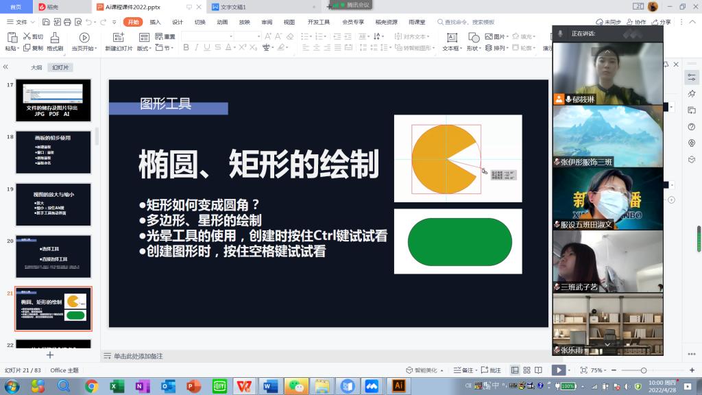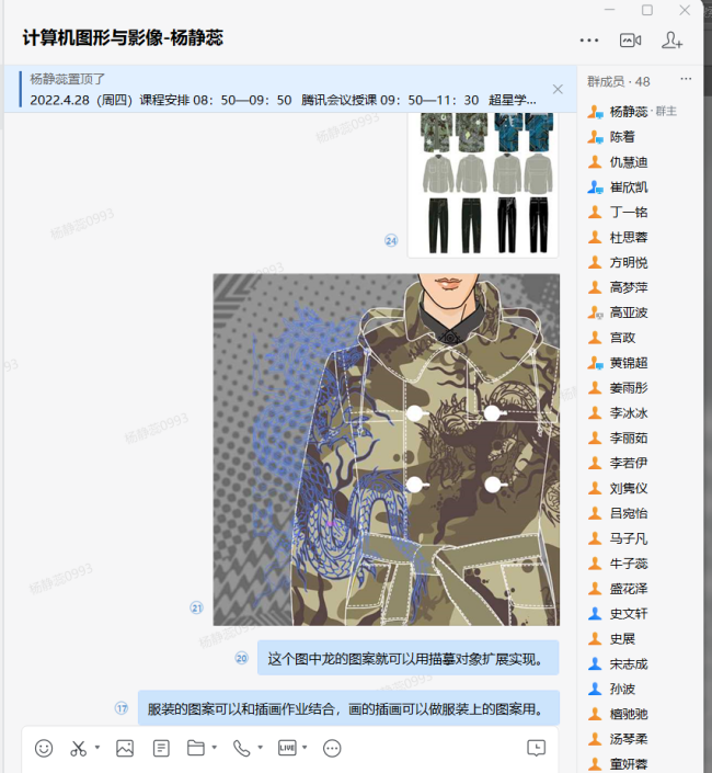 教师郁筱琳为服装与服饰设计班讲授《计算机图形与影像》课程,采用雨课堂、腾讯会议直播平台。