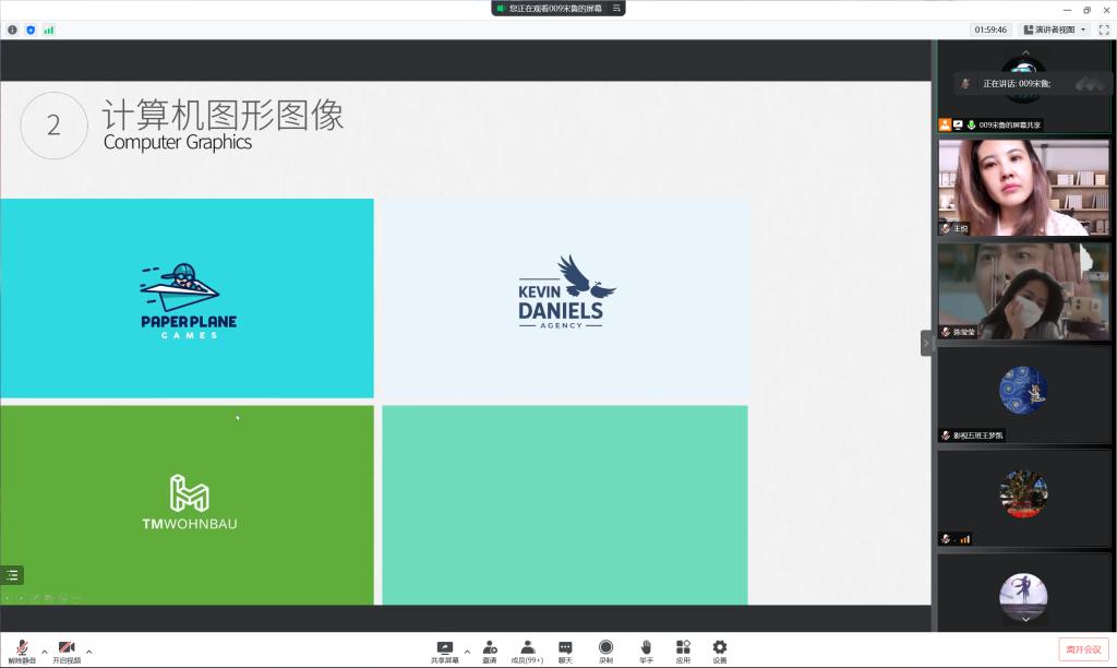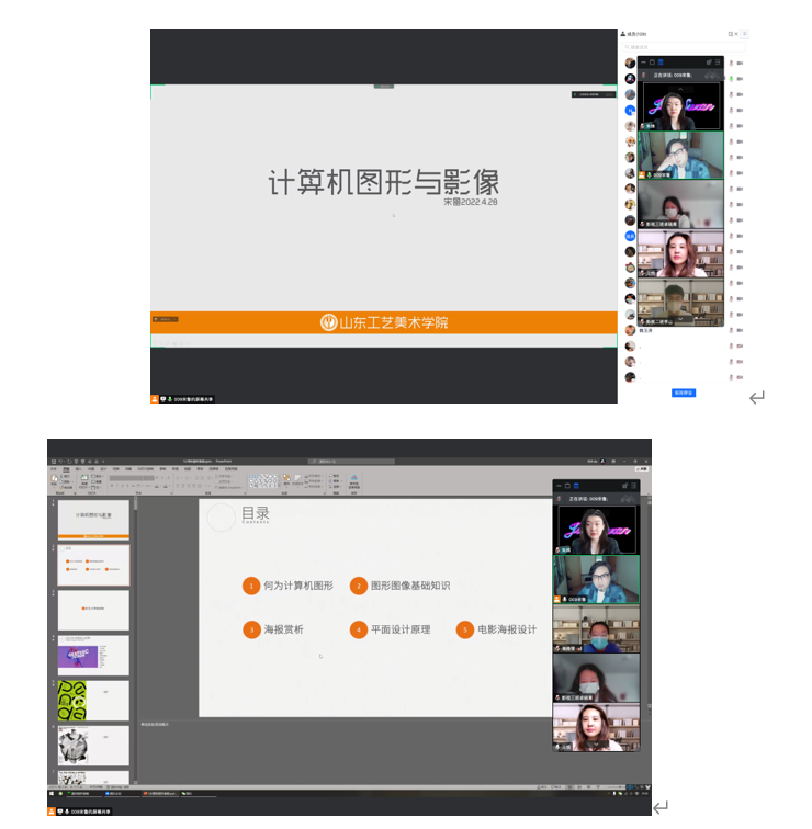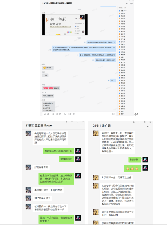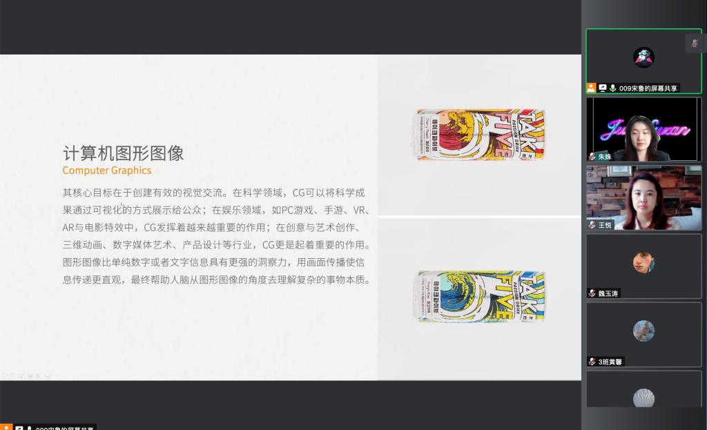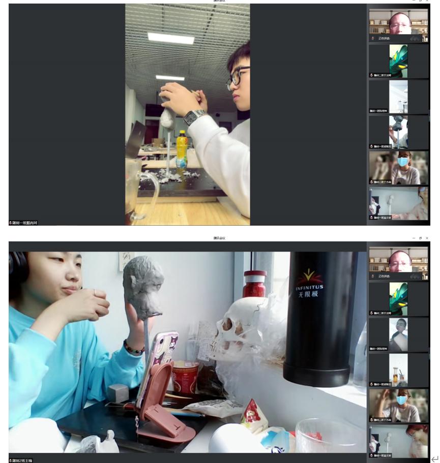 教师宋鲁、王悦、朱姝为影视摄影与制作班讲授《计算机图形与影像》课程,采用腾讯会议直播平台。