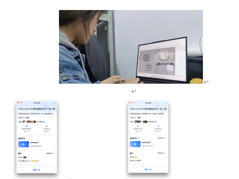 本周为《计算机辅助设计》第四周,课程继续采用线上教学形式,通过雨课堂、腾讯会议等多种授课平台顺利开展在线教学。在课堂中运用视频签到的措施确保每位同学能准时进入课程,利用雨课堂随机点名功能与学生实时互动,提高学生线上课程的参与度。同时通过微信群及时了解学生学习进度、回答疑问。课后采用实时答疑与作业综合讲评相结合的方式,学生进行线下实操,教师实时进行线上答疑,通过微信根据学生遇到的具体问题进行有针对性的讲解并给予指导意见。通过理论讲述、视频实际范例操作,构建学生的三维模型的制作与读、绘产品设计图样的能力。