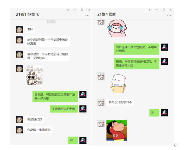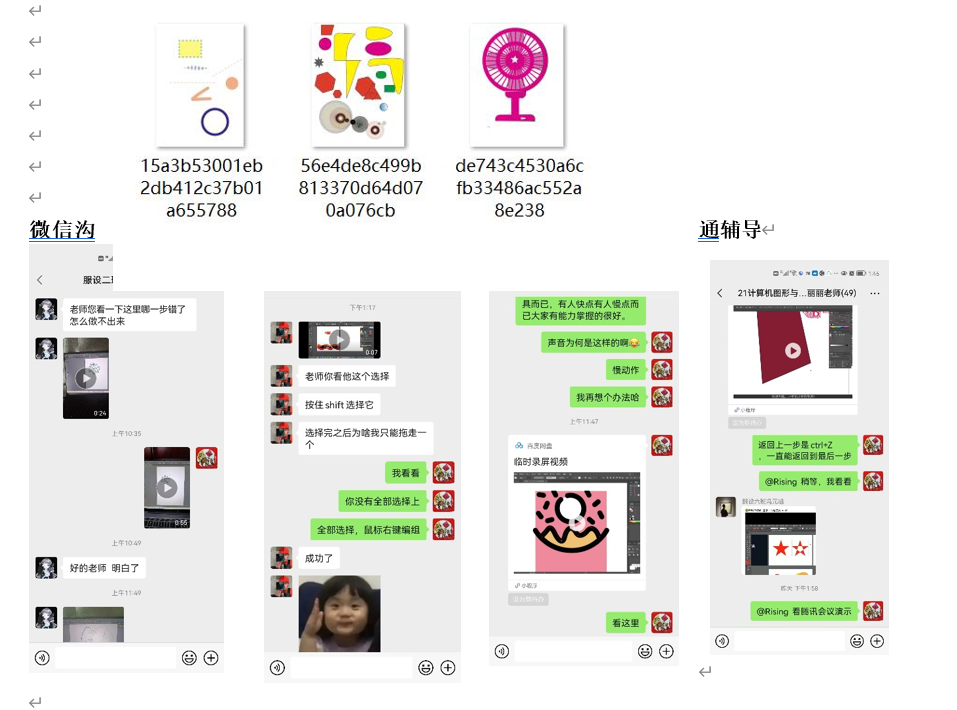 以下是上课内容截图,包括视频,与学生在微信群沟通的图片文字,以及学生作业。