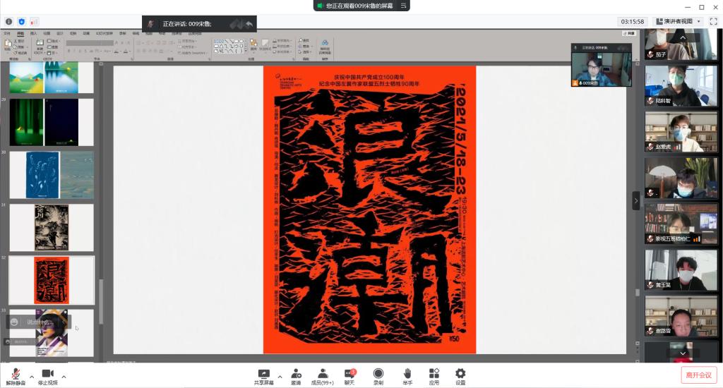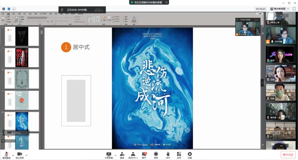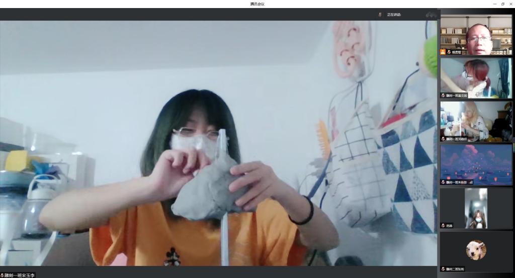 教师刘瀛波为视觉传达设计班讲授《流行趋势分析》课程,采用腾讯会议直播平台,中国幕课在线开放课程教学资源,微信线上辅导教学平台。