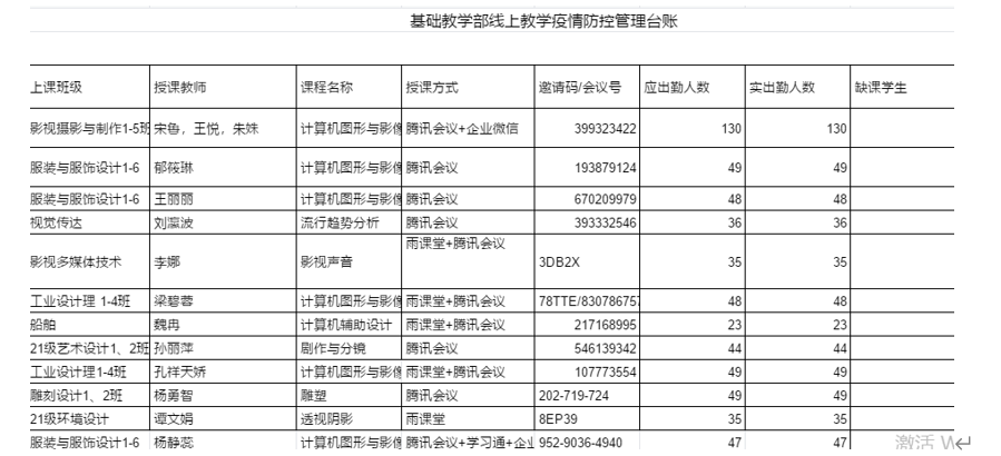 基础教学部线上教学疫情防控管理台账