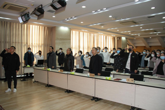 现代手工艺术学院副教授徐强带领全体新进教职工进行入职宣誓。