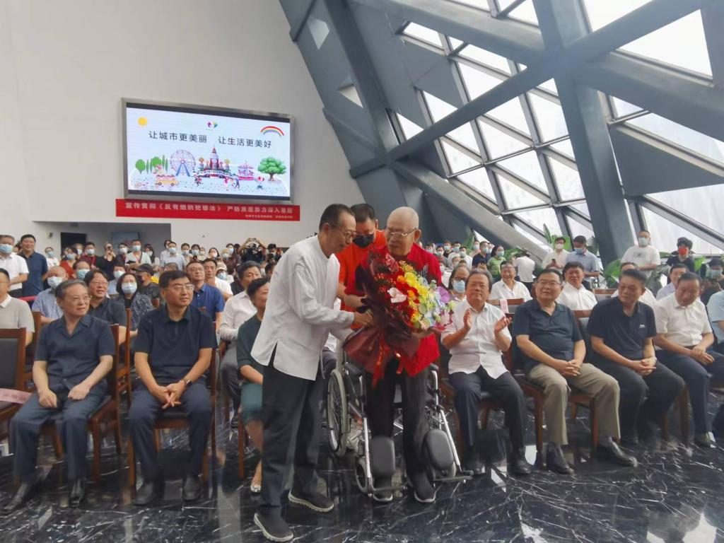 开幕式开始前,潘鲁生向中国国家画院院委、山东省文联名誉主席、山东省美协名誉主席刘宝纯献花致敬。从上世纪七十年代起,刘宝纯先生一直坚持画黄河,创作了一大批承载着历史记忆的黄河题材的优秀作品,激励新时期的山东美术家继续紧跟时代步伐,勇担时代使命,创作出更多彰显黄河文化气象与精神的美术精品。