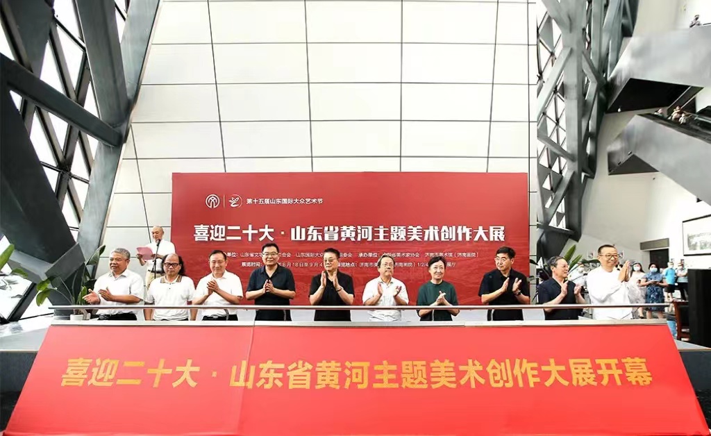 8月18日,由山东省文学艺术界联合会、山东国际大众艺术节组委会主办,山东省美术家协会、济南市美术馆(济南画院)承办的喜迎二十大·山东省黄河主题美术创作大展在济南开幕。院长潘鲁生,党委委员、宣传部部长韩文涛出席开幕式,开幕式由山东省美协常务副主席张宜主持。