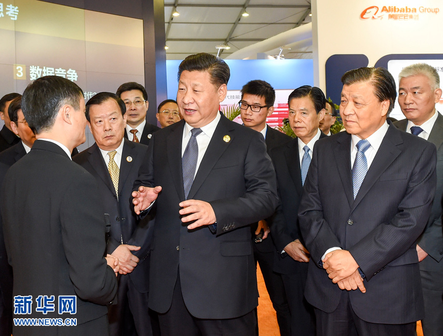 图为:2015年12月16日,中共中央总书记、国家主席习近平在浙江省乌镇视察“互联网之光”博览会。