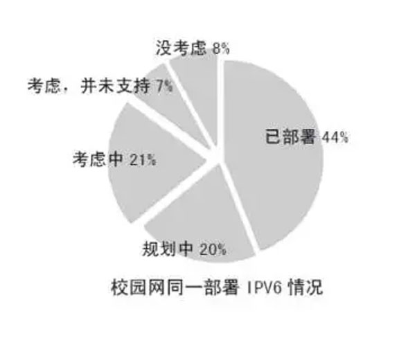 在IPV4 地址资源竭尽的情况下,47% 校园网出口使用私有IPv4 地址,IPV6 的部署情况却只有四成,需要发展。