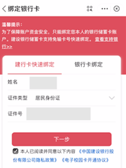 (如果没有建行卡,也可以选择其他银行卡绑定,按照提示绑定后,最后返回小程序主界面点击下方的“微信认证”。即可使用微信付款码支付。)