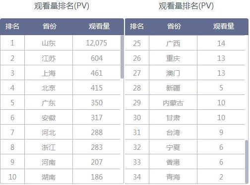 从观看量地域分布情况来看,山东、江苏、北京、上海等几省市观看量位居前列,西部省区观看量较少,只有几人次,分析原因,一方面,观看量较多的区域也是我校生源主要来源区域,得到直播信息人多量大;另一方面,我国东部沿海地区互联网设施稳定,信息传播快,可以较好地收看直播实况。