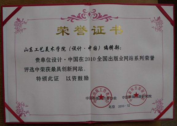 12月16日,2010全国出版业网站年会暨颁奖典礼在北京举行。年会由中国出版工作者协会、中国新闻出版研究院主办,国家新闻出版总署互联网出版监测中心、国家新闻出版总署教育培训中心以及中国报业协会、中国出版物发行协会等单位支持。来自政府管理部门、出版社、报刊社、发行企业、数字技术服务商等单位的300余位与会代表参加了年会。以我校网络信息管理中心为骨干力量建设的设计专业垂直门户网站《设计•中国》(