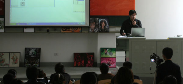 王东在讲座中首先提出了数字时代需要怎样的人才这一问题,针对当前社会对于数字艺术人才的需求,介绍了Adobe认证体系。惠岩通过几个实例,详细讲解了Adobe数字艺术创意设计系列软件的应用。张予通过实际操作,给大家展示了Iullstrator的功能、操作及结合手写板的使用方法。此次讲座持续了近两个小时,讲座过程中还穿插了有奖问答活动,使同学们在欢快的气氛中对Adobe数字艺术及Adobe认证有了更加深入的了解。