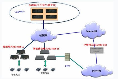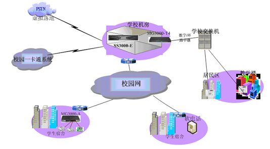 与中小学校不同,大学校园学生、教工众多,师生都来自全国各地,不少高校甚至由多个校区组成,毫不夸张的说,大学校园如同一个很大的社会圈,也具有一个很大的社会消费群体。校园内部办公的互相通讯、校园与外界的通讯交流,都需要借助电话来完成。然而在校学生经济承受能力很低,教工办公又需要降低通讯成本,为此,在校园内组建VoIP网络电话,已经成为很多高校实现低话费通讯的重要手段,由于大学校园具有特殊的消费群体,在组建VoIP网络电话时也需要量身定制,以满足师生校内、校外的通讯使用需求。